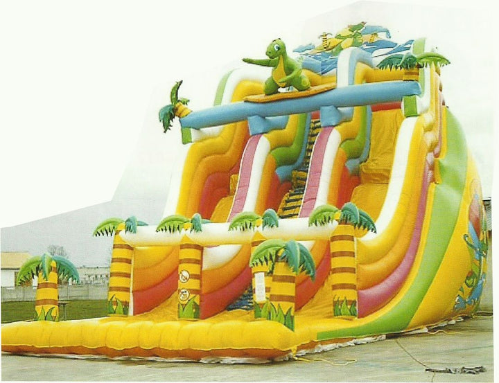 Inflatable slide “Dino” with a trampoline. The attraction attracts attention with its large size and bright design, and its stunning slides guarantee unforgettable impressions of delight and happiness. This Dino bouncy slide is designed with bright colors, soft surfaces, and safety features to make playtime safe and enjoyable. It comes with mesh walls for ventilation and visibility, allowing parents to monitor kids while they play. You can set it up in just a few minutes using the included air blower. It is suitable for outdoor areas such as gardens, lawns, or poolside spaces. The strong, puncture-resistant material ensures long-lasting use, even with daily play.