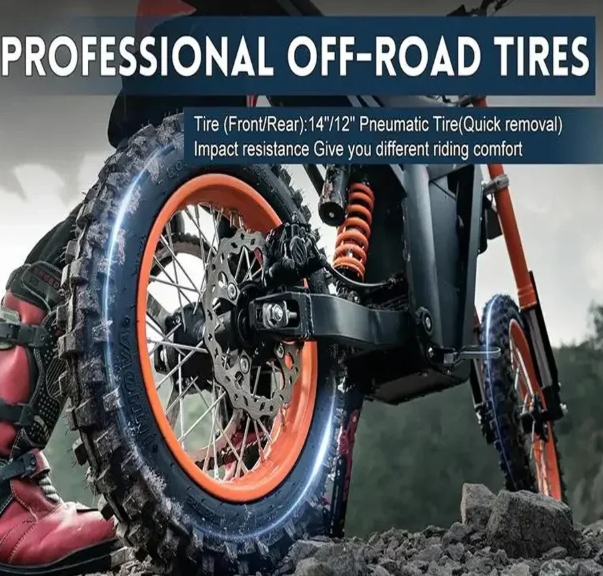 - All-Terrain Dominance: Equipped with a 14-inch front tire and a 12-inch rear tire, this e-bike provides excellent traction and stability across all terrains.