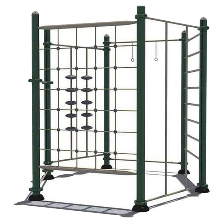 The Gambol Ninja Lil warriors Obstacle Energem playset (Board Swing, Monkey Bars, Rope Climb) is an excellent option for those hoping to provide an entire system of play for their children and friends of their children. The playset includes a vertical ladder, monkey bars, a board swing, pull-up bars, and climbing ropes. This superior playset is designed to give your children multiple options for their playing time. A strong and secured metal structure ensures longer lasting aesthetics as well as durability through the elements. This set must be anchored into concrete to ensure the set is completely stable. This Obstacle Playset is recommended for children from three to eight years old. Perfect for outdoor play and physical exercise The monkey climbing bar features an exciting variety of activities including climbing, hanging, etc. Brightly colored and full of fun, this will be a favorite for years to come.