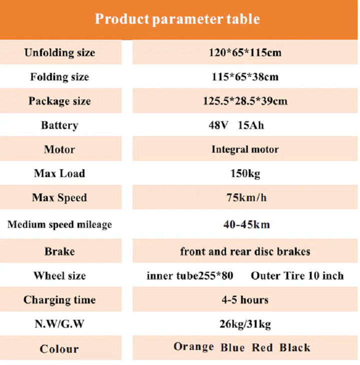 - Max Speed:75km/h